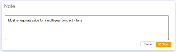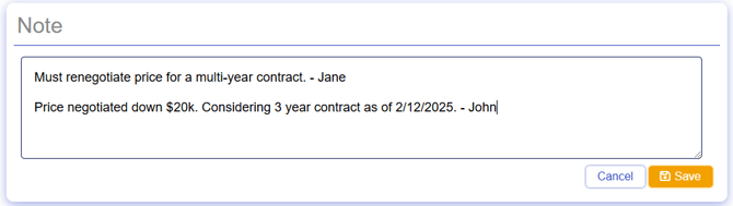 Notes is a single textbox that can be added onto by anyone with the Can Manage Contracts permission.