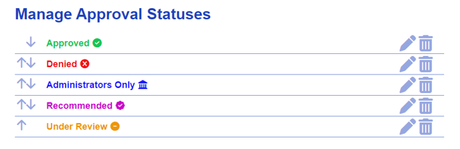 Customize the wording and appearance of Approval Statuses to meet your organization's needs.